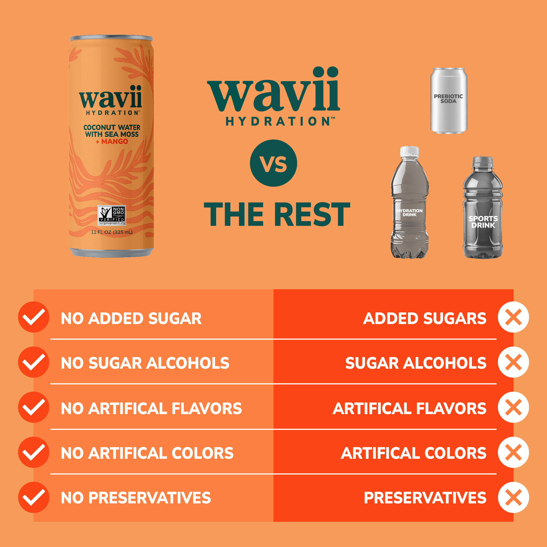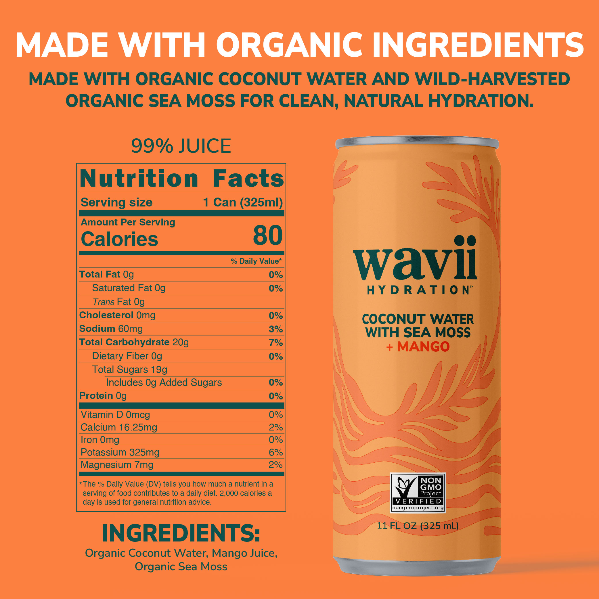 Clean Refreshing Hydration with Naturally Occurring Electrolytes, No Added Sugar, Non-GMO